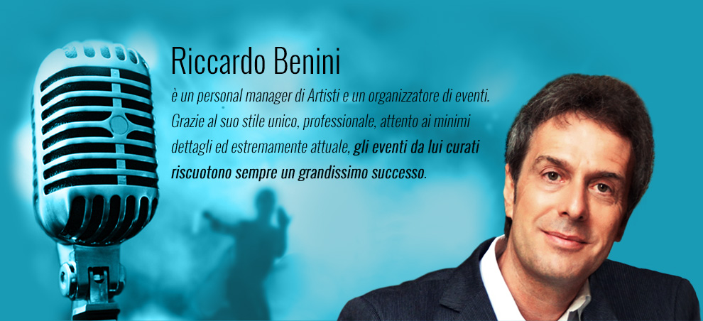 In qualità di organizzatore di eventi, Riccardo Benini è da sempre l'Ufficio Relazioni del Premio Lunezia, Conferimento al Valore Musical-Letterario dei Testi delle Canzoni Italiane, che ha visto tra i vincitori Fabrizio De Andre', Vasco Rossi, Luciano Ligabue, Biagio Antonacci, Laura Pausini, Claudio Baglioni, Anna Oxa, Antonello Venditti, Elisa, Negramaro, Alex Britti, Ivano Fossati, Lucio Dalla, Toto Cutugno, Gianni Morandi, Andrea Bocelli, Patty Pravo, Ornella Vanoni, Mango, Pooh, Max Pezzali, Nek, Francesco Renga, Roberto Vecchioni, Charles Aznavour, da lui premiato nel 2010 al Teatro La Fenice di Venezia.